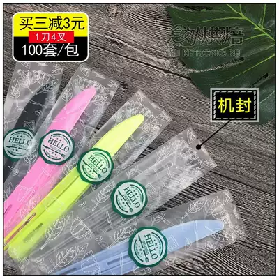 Disposable Mid-Autumn Moon Cake Knife and Fork Set of Cake Fork High-grade Ice Skin Moon Cake Tableware Packaging 1 knife 4 Forks 100 sets