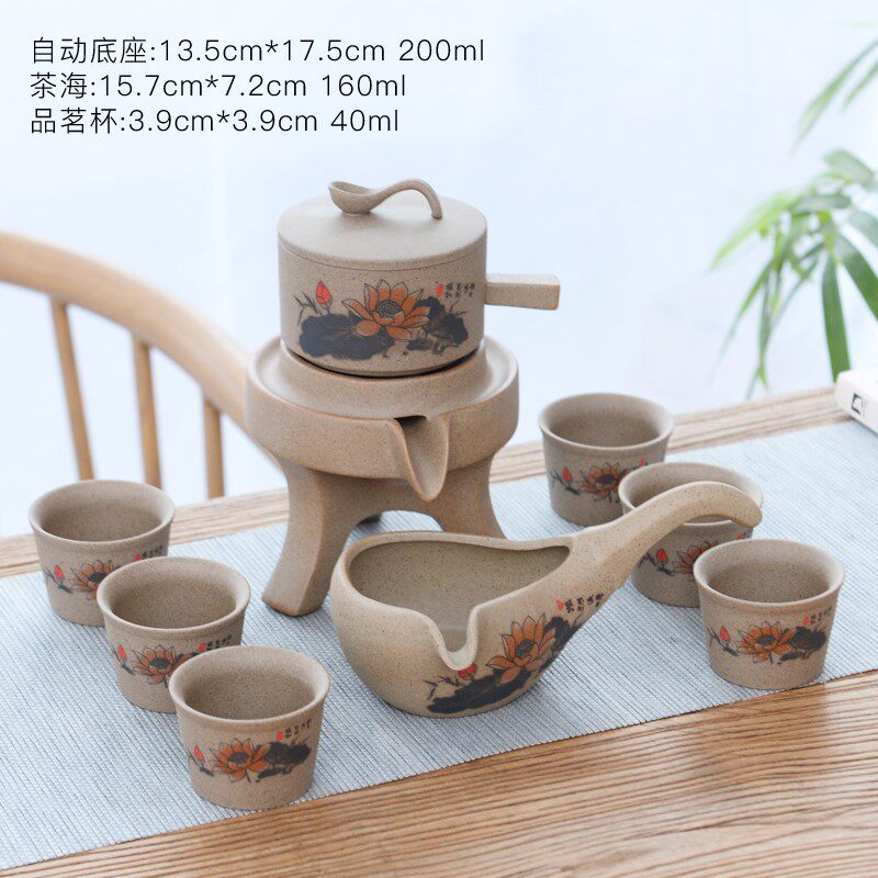 Coarse Pottery Full Semiautomatic Tea Set Whole Qigfu Tea Cup Tea Cup Set Group Home Sloth Tea Stone Grinding and Grinding Tea