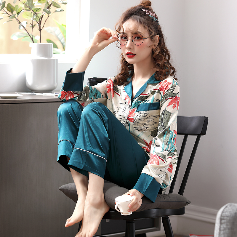 Changle Gallery 2019 New Sleepwear Women's Spring And Autumn Models Long Sleeves Thin Ice Silk Summer Air-conditioned Room Home Suits Suit