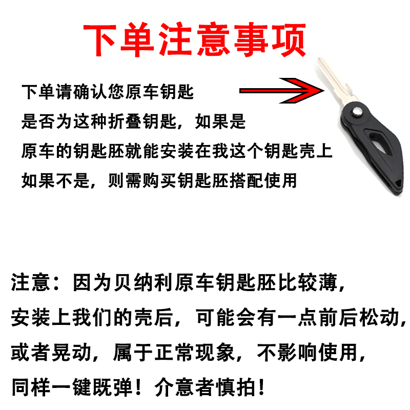 Points to note when placing an order Must-see A-style key shell black A-style key shell red A-style key shell titanium-colored B-style key shell black B-style key shell red B-style key shell titanium-colored Benelli key blank