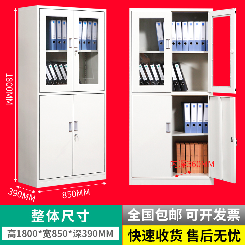 Thickened glass pair open door through body with lock file information cabinet Tin Cabinet Filing Cabinet Financial Office Warrant Cabinet