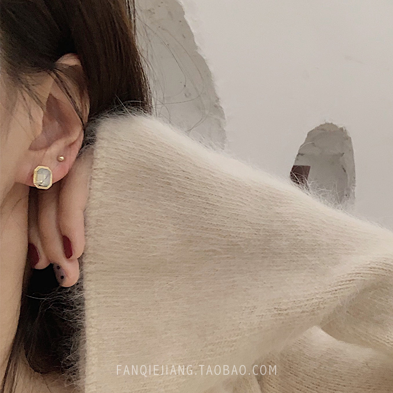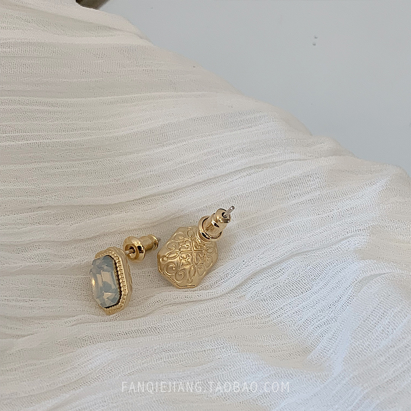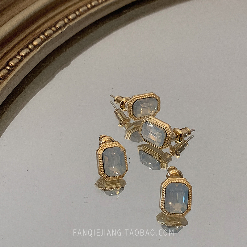 Advanced Sensual Antique Style Imitation Gemstone Earrings Woman Pure Silver Earrings 2021 New Tide Personality Temperament Small Crowdwear