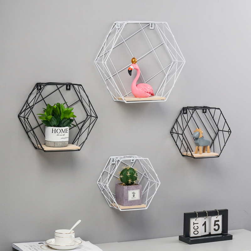 Black twill hollowed-out large number main picture suit combination (without watch and magazine)) white twill hollowed-out small number iron art hanging basket rack small number black and white twill hollowed-out large sloped wood bottom-white