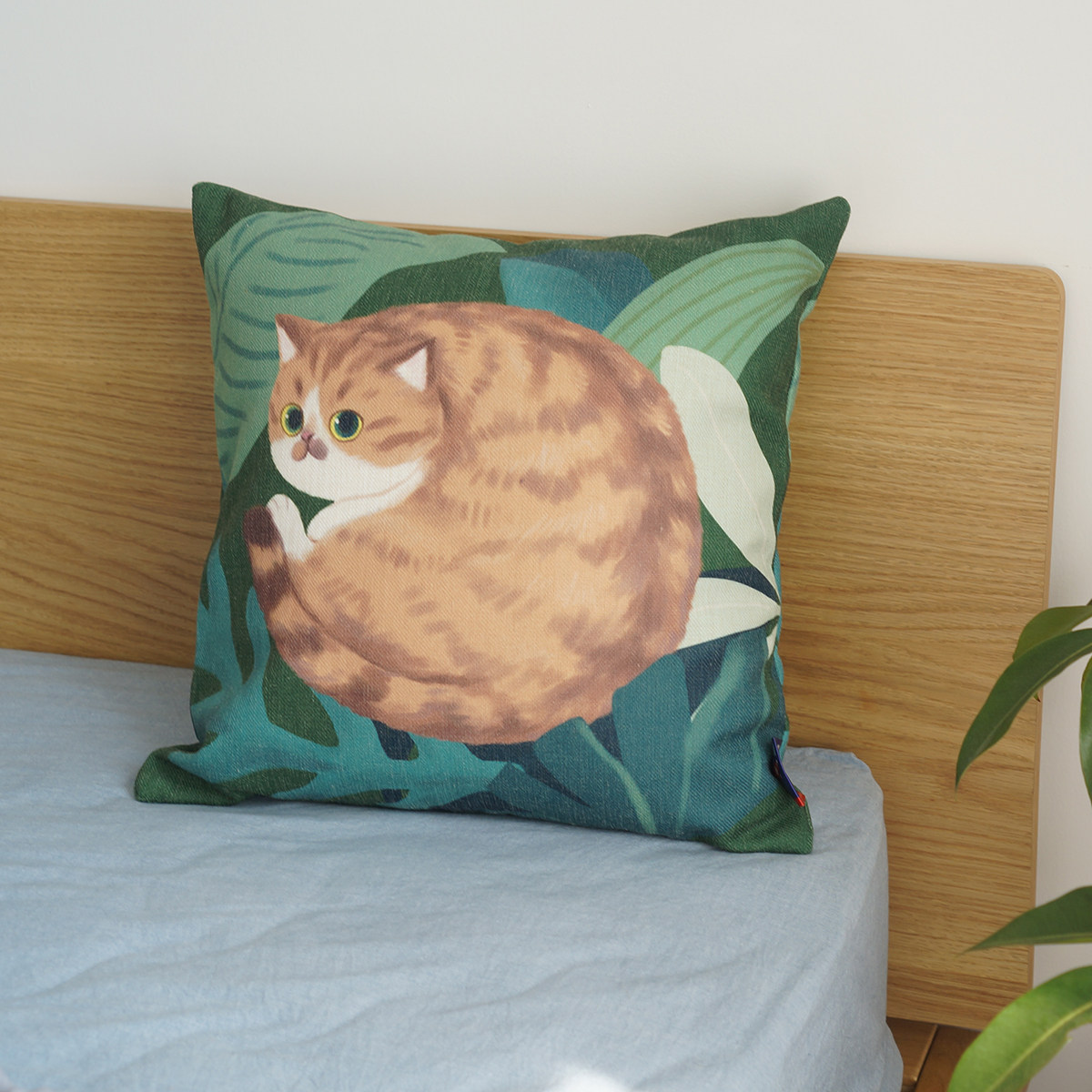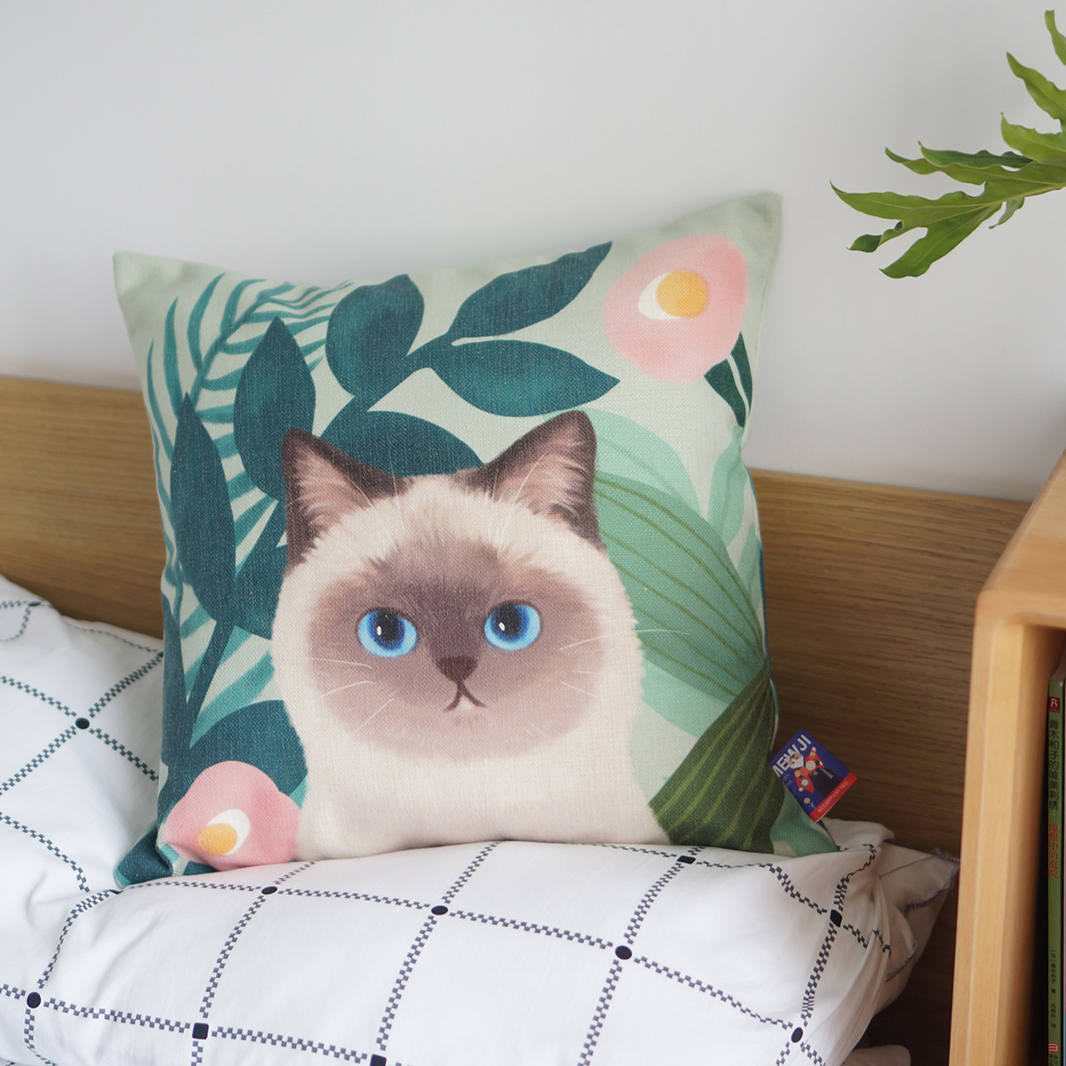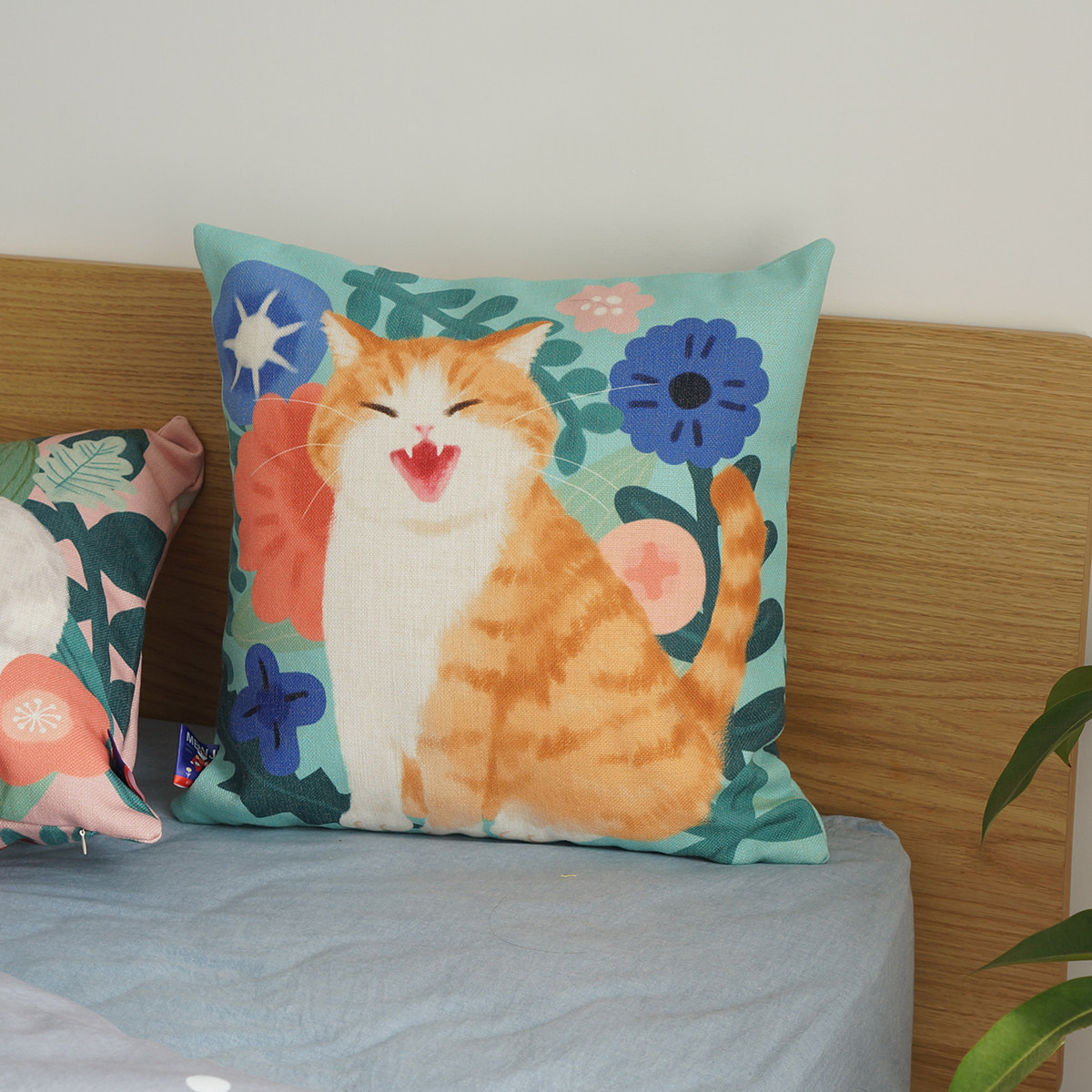 Miaoji MEWJI Original Illustration Pillow Cute Cat Cotton Linen Plant Cat Cushion Sofa Bed Lumbar Pillow