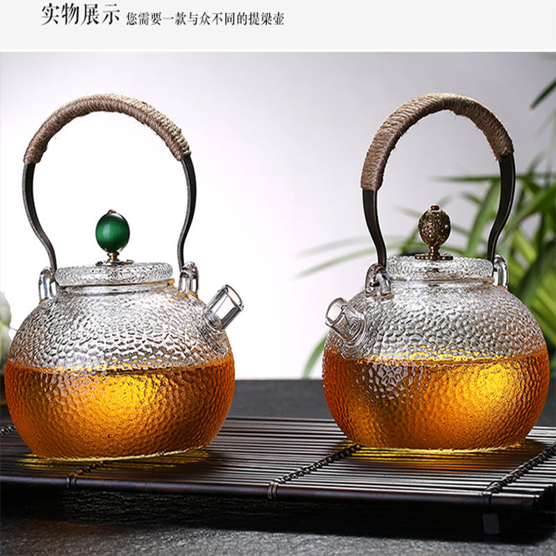 Copper handle beam kettle Glass teapot thickened high temperature resistant hammer kettle Tea maker Handmade Japanese Kung Fu tea set