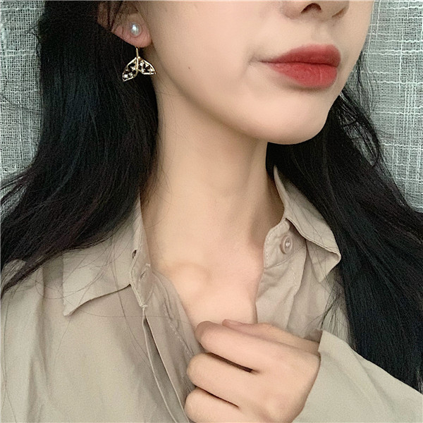 Hollowed-out Pearl Fish Tail Earrings 2022 New Tide Woman Long Version Temperament Personality 100 Lap Net Red Ear Pints