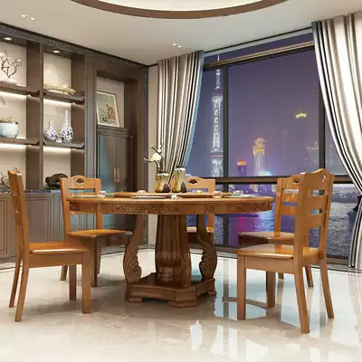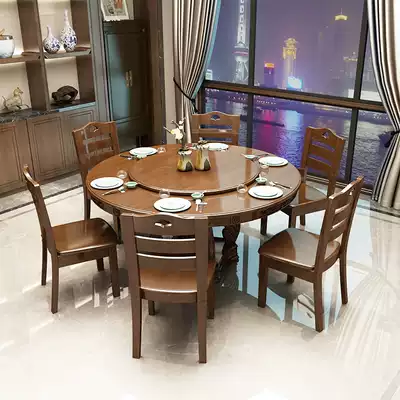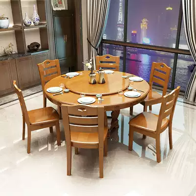 All solid wood dining table and chair combination modern Chinese round table oak table with turntable hotel home dining table