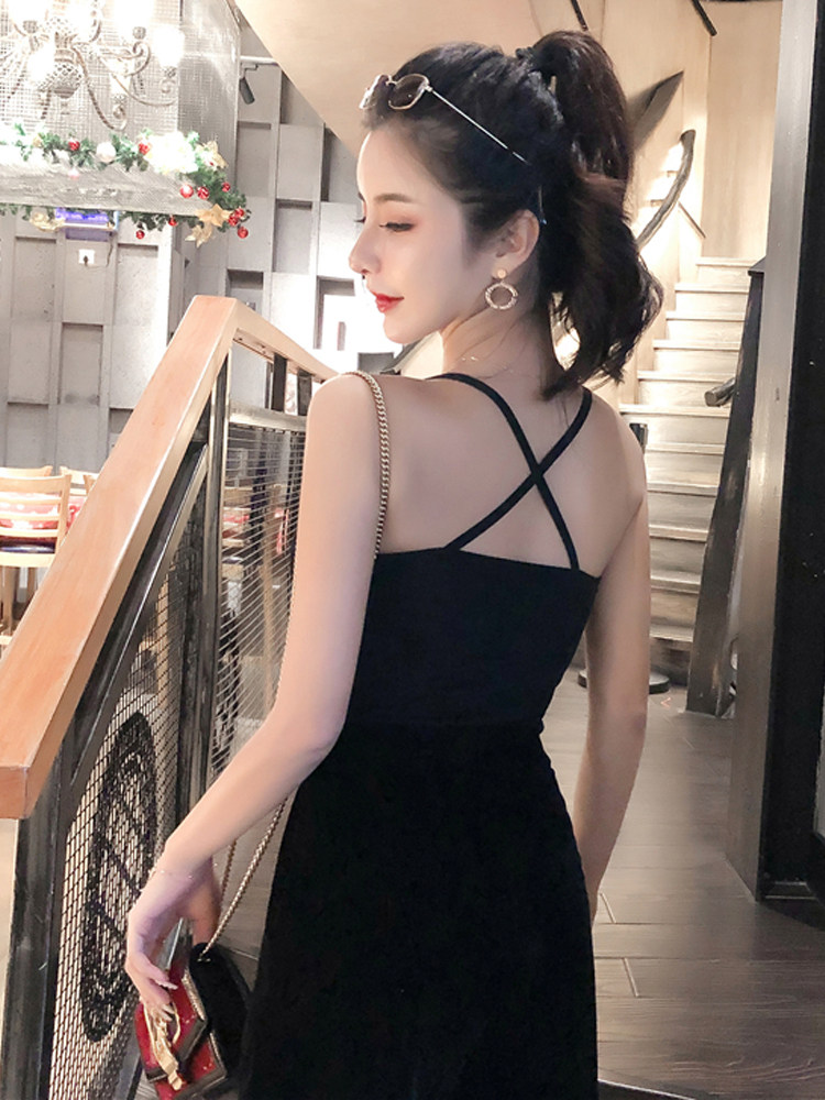 Gegejia Internet celebrity V-neck cross beautiful back bottoming tube top long sexy gray inner straps and outer vest women
