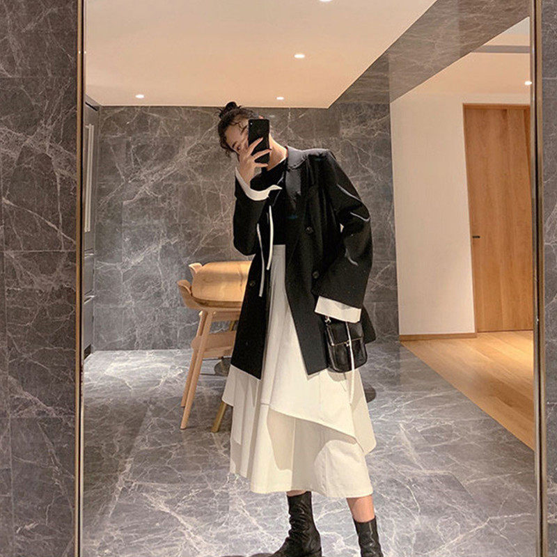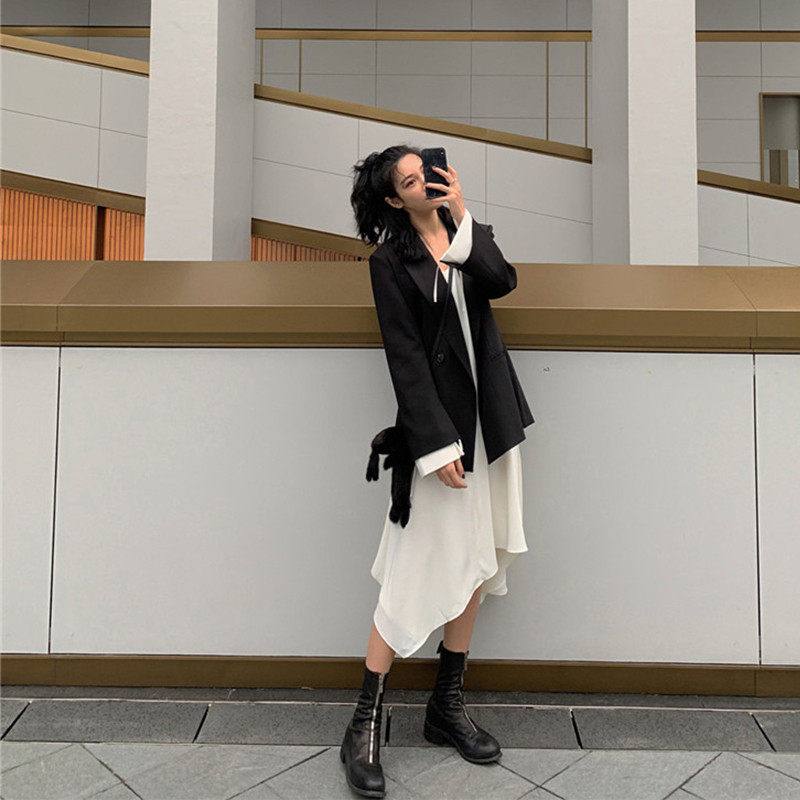 BLACK SUIT APRICOT COLOR HANGING STRAP SKIRT S BLACK SUIT APRICOT COLOR HANGING STRAP SKIRT M BLACK SUIT APRICOT COLOR HANGING STRAP SKIRT L BLACK SUIT APRICOT COLOR HANGING STRAP SKIRT XL