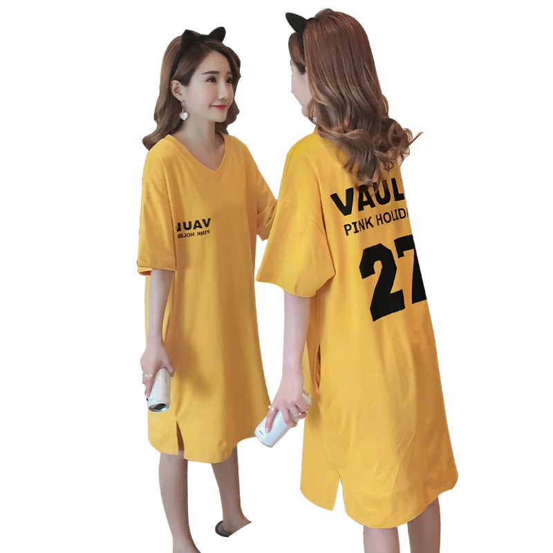 Night dress women's summer pure cotton short-sleeved thin Korean version fresh student loose large size women's pregnant pajamas women's summer