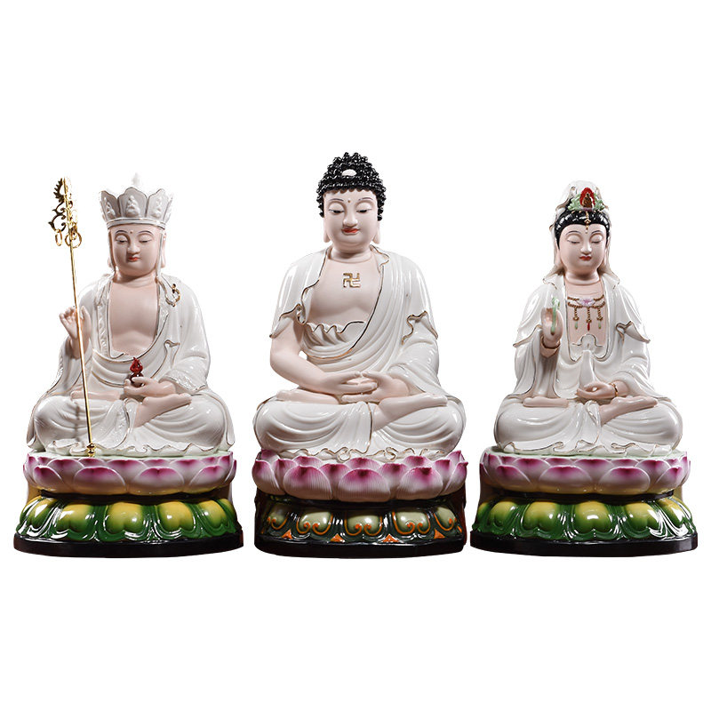 Dai Yutang Sa Po three saints Amitabha Buddha Guanyin Bodhisattva Tibetan King Bodhisattva Ceramic Buddha statue home worship ornaments