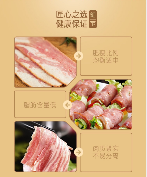 Xhi Bacon 2kg Western-style Smoked Slices Breakfast Scallion Pancake Barbecue Golden Needle Mushrooms Pizza Toast Baking Material