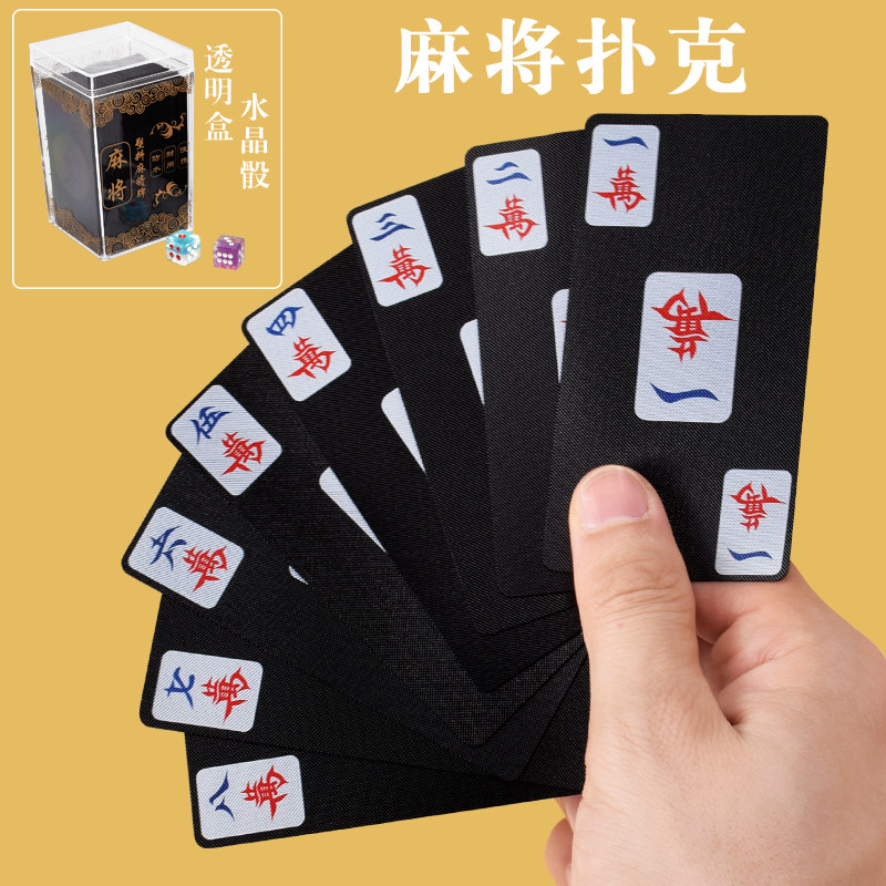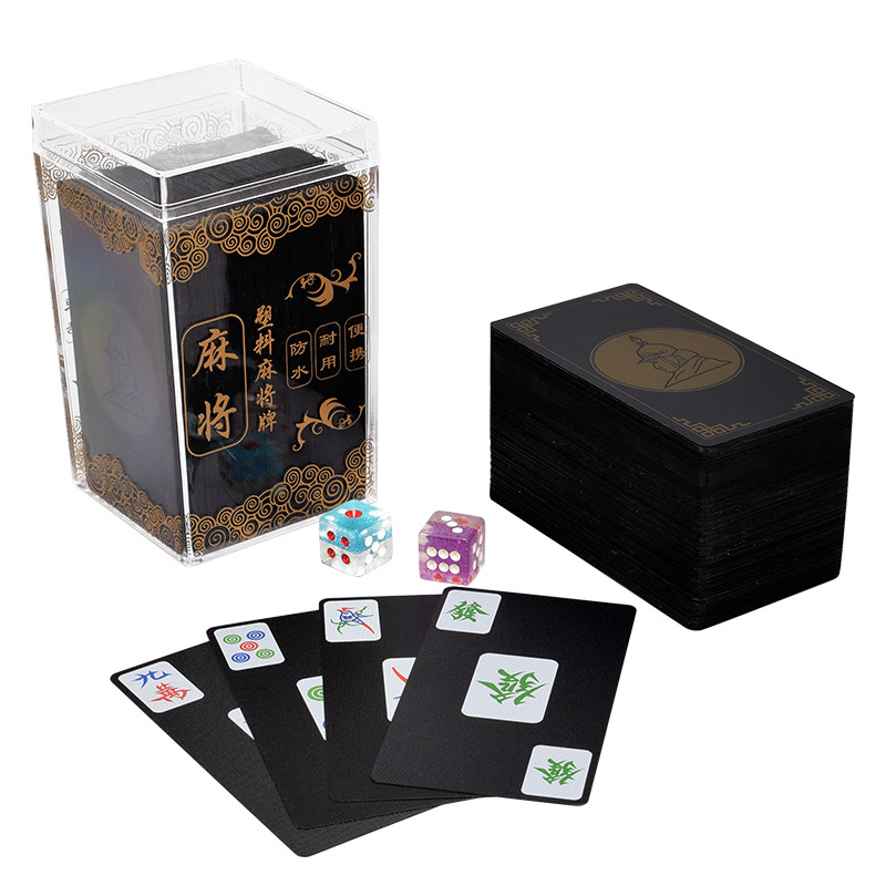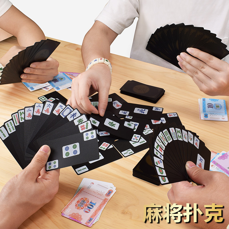 (Black - Thickened& Enlarged) Plastic Mahjong Poker (150 cards) + Storage Box + Plastic Playing Cards
