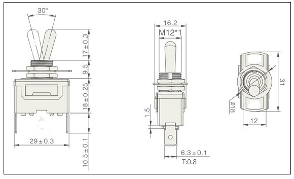 Taiwan imports TOCO plug-in terminal pin button switch toggle switch shake head switch good goods