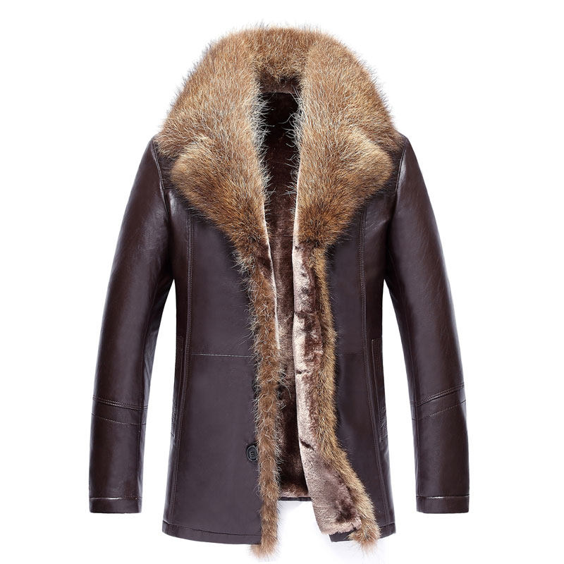 Henning Peel Grass Male fur collar medium long new fur integrated male leather fur coat male leather grass Garfertilizer to increase coat