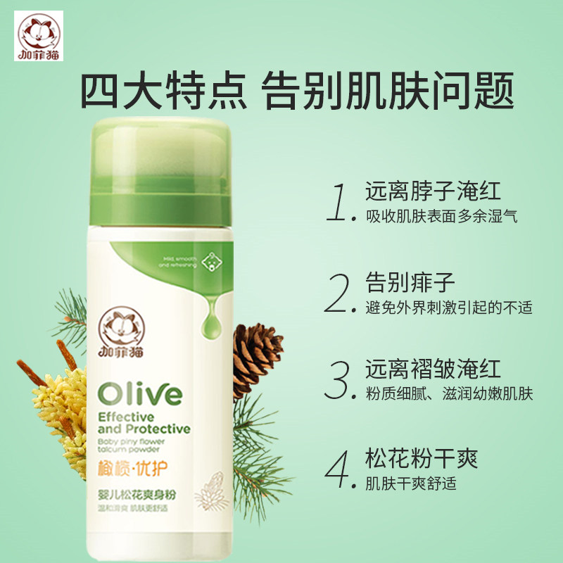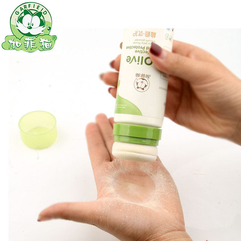 Garfield pine pollen baby talcum powder baby special newborn bb baby natural corn prickly heat powder with puff - Taobao
