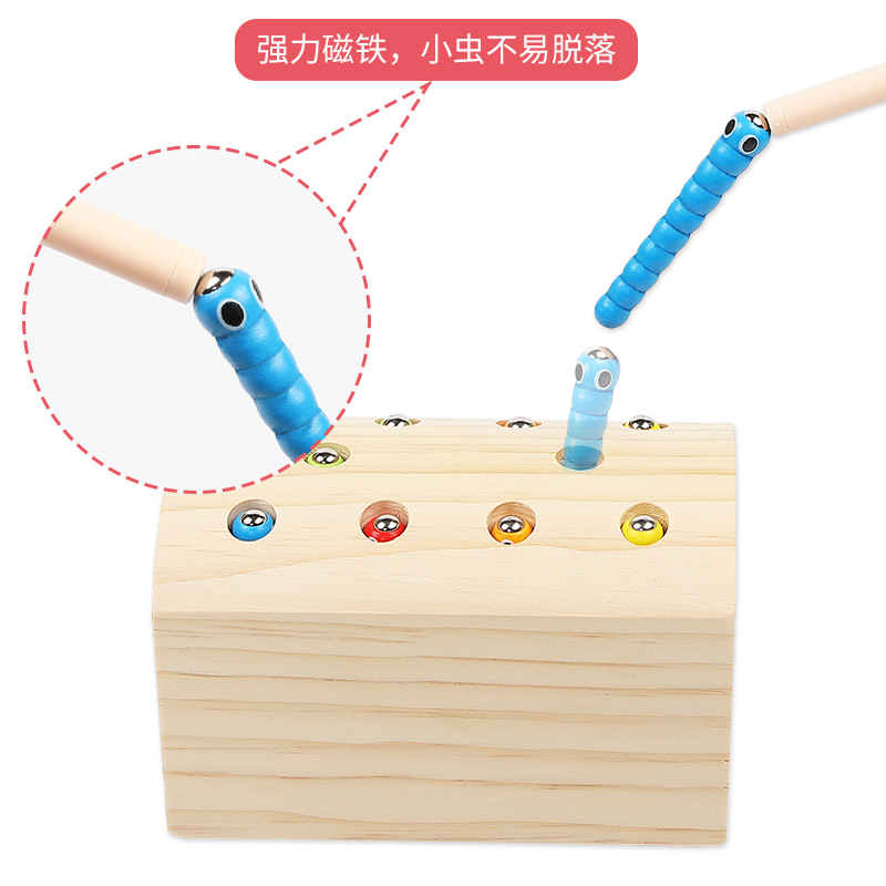 5 caterpillars, 1 suction stick, 10 caterpillars, magnetic insect catching game (log color), log color catching insects (15 worms, 2 suction sticks), catching insects, rainbow stacked circle magnetic insect catching game (purple) magnetic