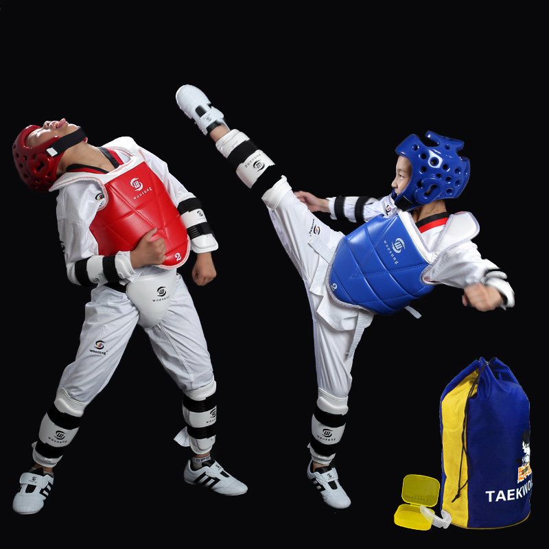 WOOSUNG TAEKWONDO PROTECTION KIT FULL MATCH TYPE CHILDREN ADULT THICKENING TRAINING MASK SAFETY HELMET BAG FIVE PIECES