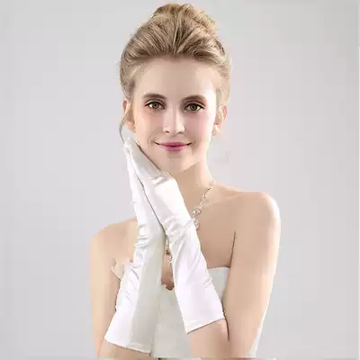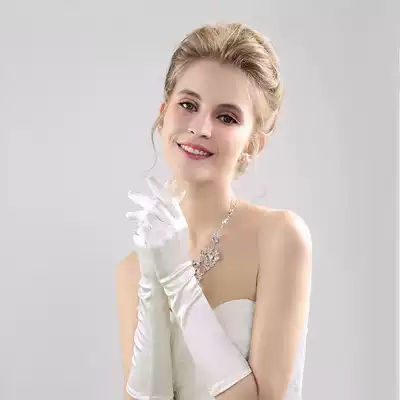 Korean version of the bride long version of the wedding gloves white wedding gloves photo studio photo style black gloves