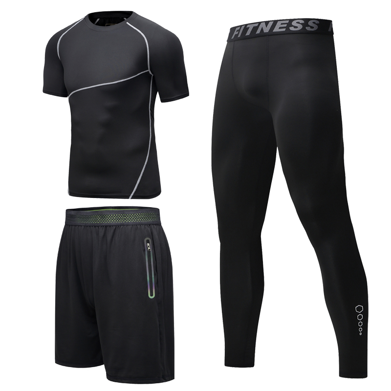 Fitness clothes men's sports suits quick-drying clothes basketball tights training equipment short-sleeved jackets running moisture wicking