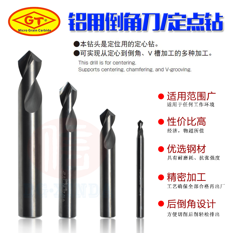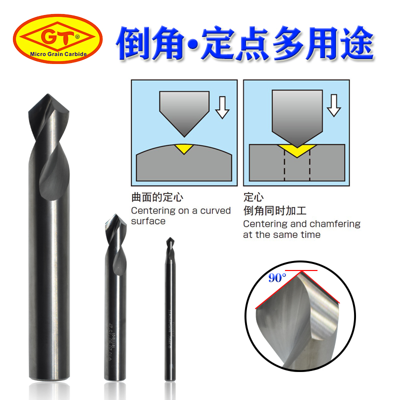 GT55 degree tungsten steel 90° fixed-point drill 2-blade aluminum chamfering knife carbide CNC extended centering chamfering drill