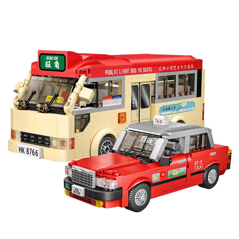 LOZ Lizhi small particles puzzle block Hong Kong bus taxi taxi model mini shape creative gift