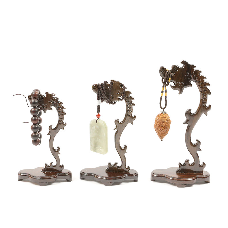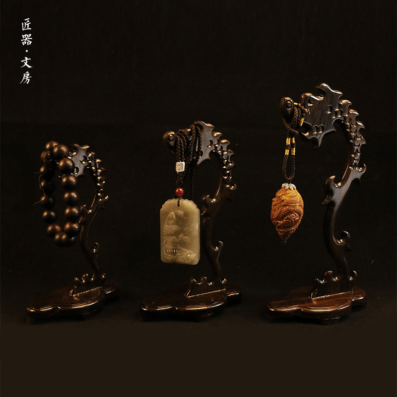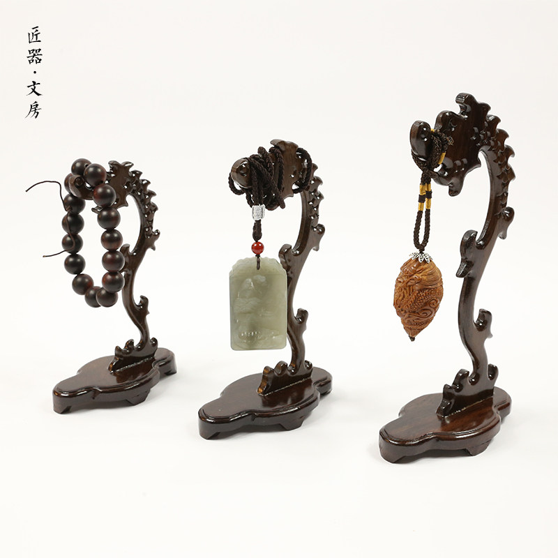 Single faucet hanging jade rack Wood carving hanging jade rack hand string hanging rack Wenwan hanging parts display wooden frame rosary rack