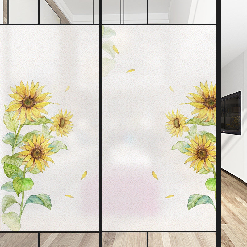 Balcony door glass adhesive film window with meritocratic electrostatic frosted film Dressing Room Light Transmission Opaque Sunflower