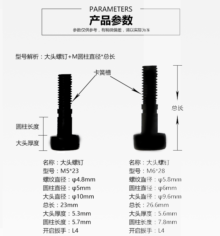 Numerical Control Cutter Knife Lever Accessories Car Tool Holder head screw Rosie M5 * 23 M6 * 28 flat head socket head screw