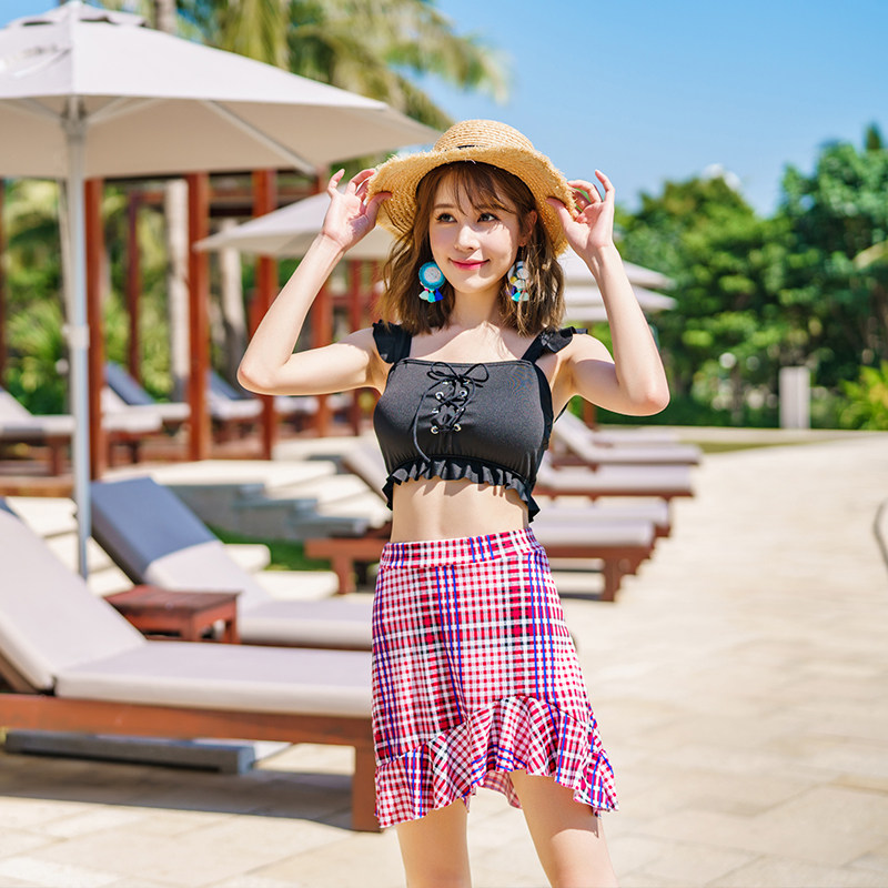 South Korean swimsuit women's two style skirts three sets of flat corners slim 2021 new sexy stylish workout swimsuit