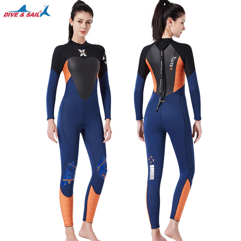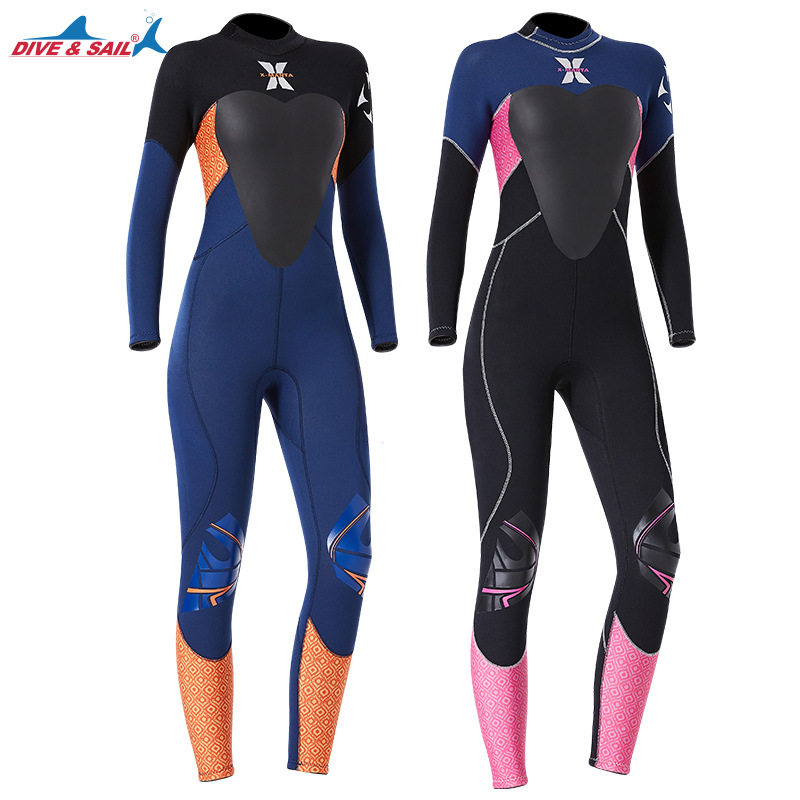 Trendy wetsuit female 3 5MM thickened warm wetsuit one-piece long-sleeved snorkeling mother swimsuit