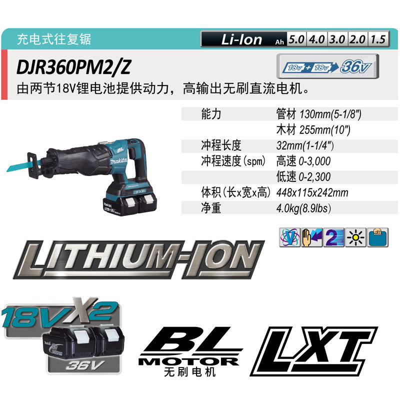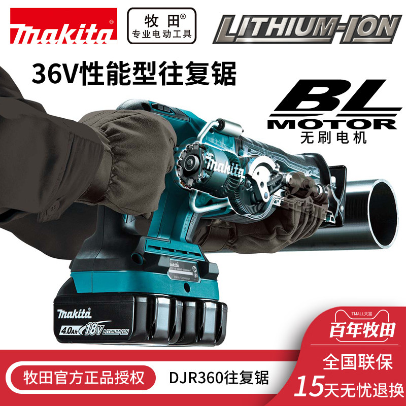 Makita Makita 36V cordless reciprocating saw DJR360 lithium saber saw portable chainsaw round steel cutting saw