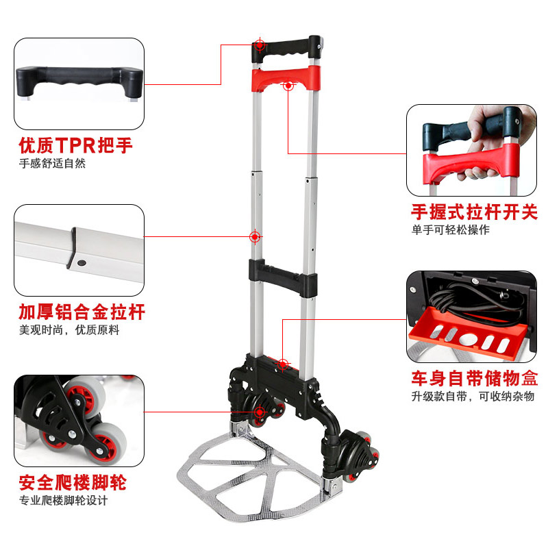 Shunhe ladder car Hand pull car Old man rod folding cart Shopping cart Small pull car Portable home cart