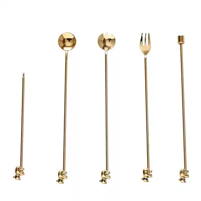 Kumagaya group Nordic Stainless steel coffee long handle spoon Creative mixing stick Fruit stick needle Dessert Dessert salad fork
