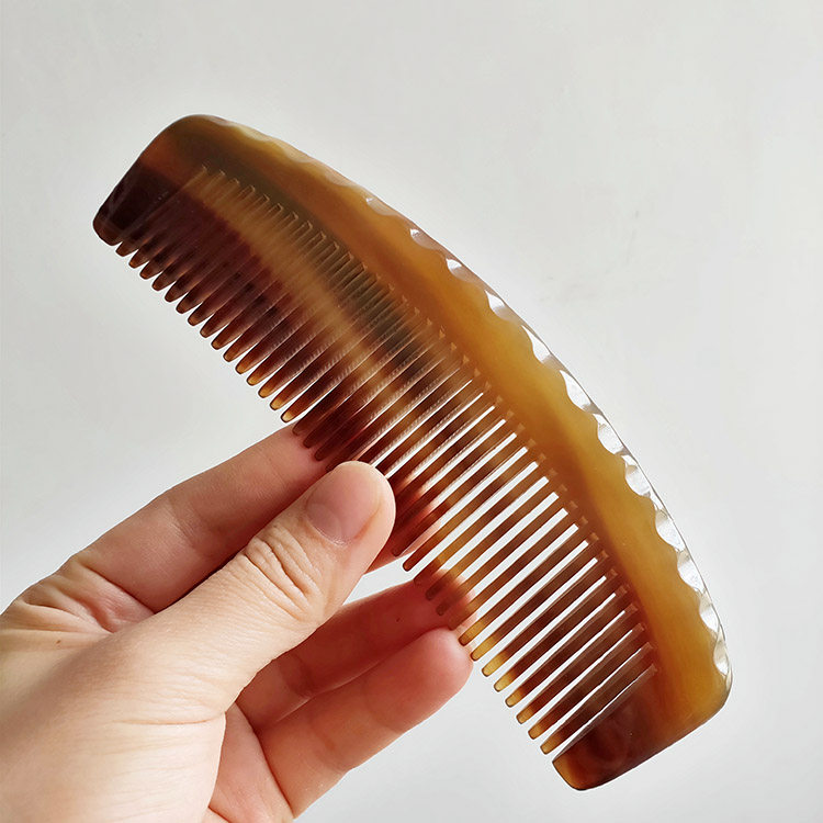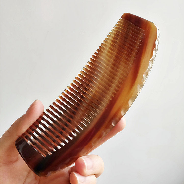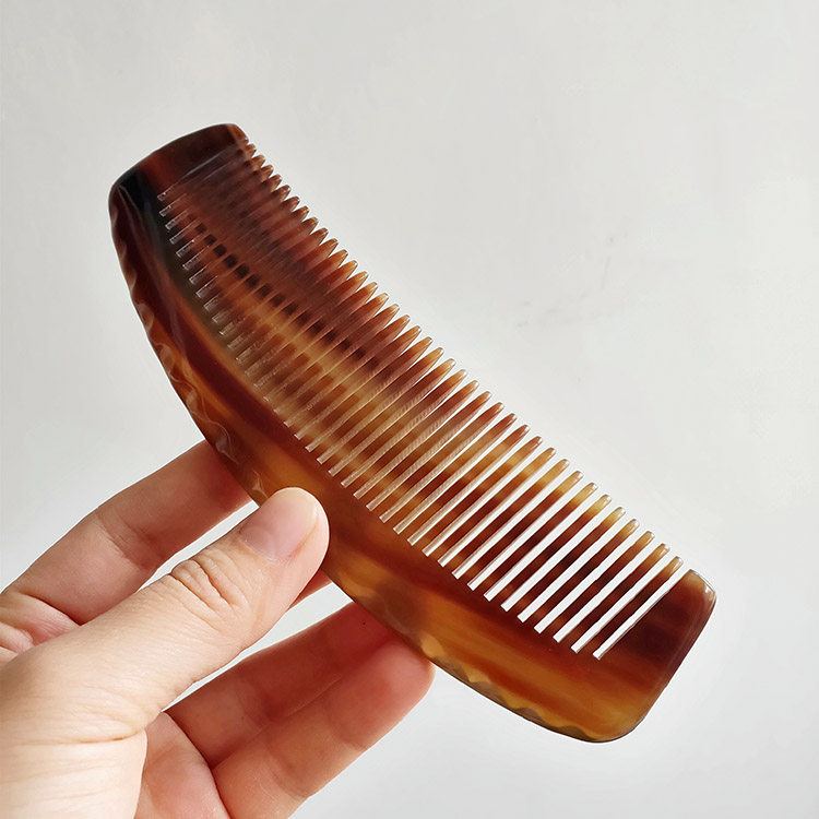 Qigege red old white buffalo horn comb handleless fine tooth straight hair comb massage scalp round hair care comb