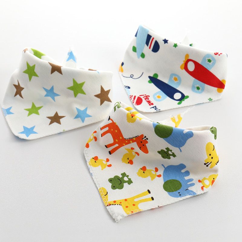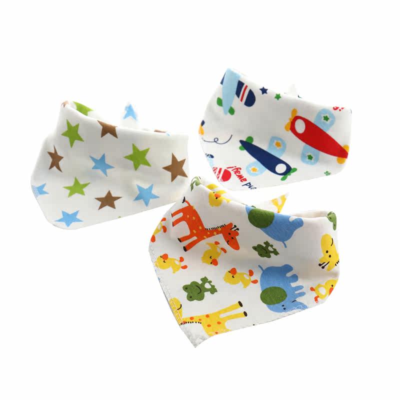 Three fitted baby triangular towels double layer pure cotton baby saliva towel double button newborn child bib bib