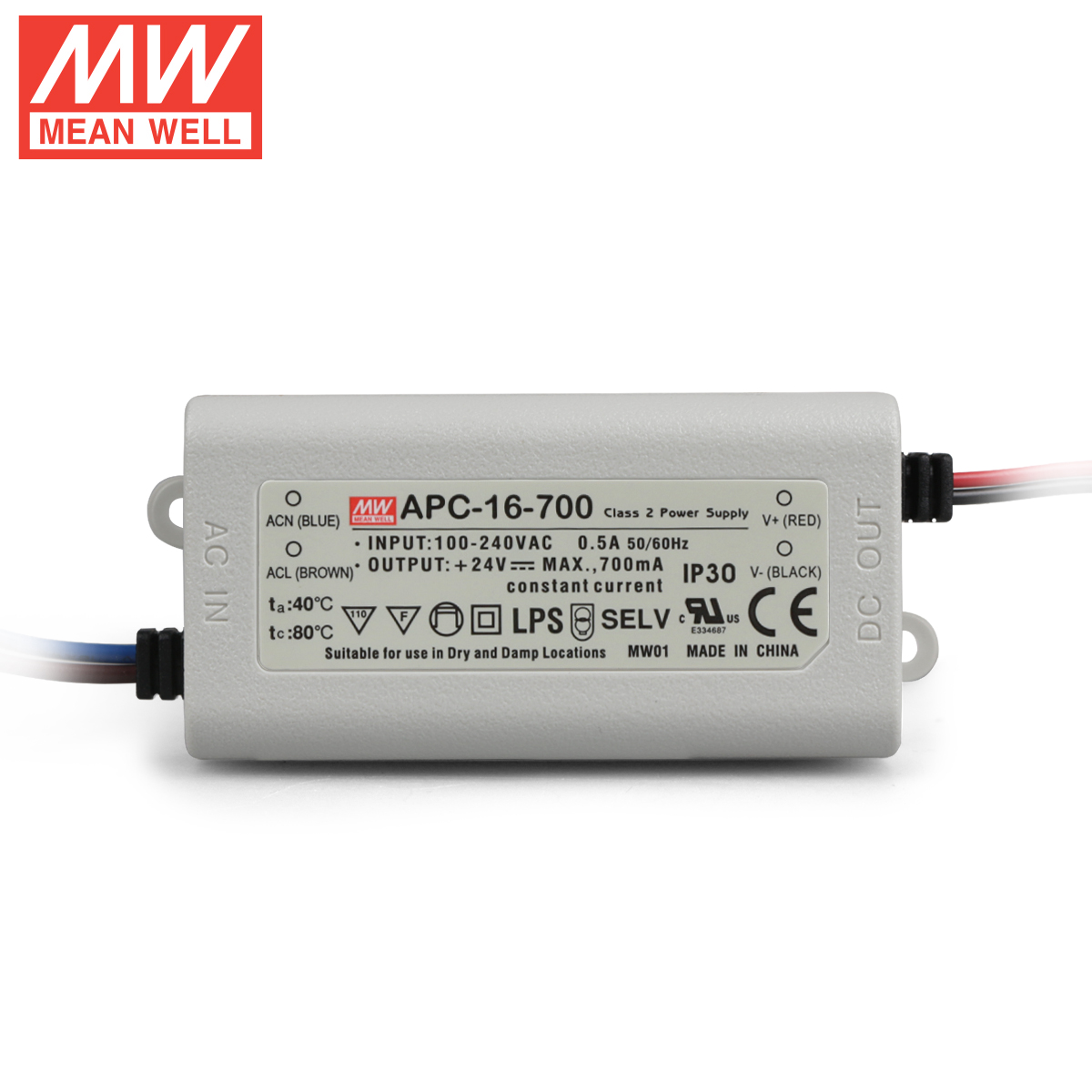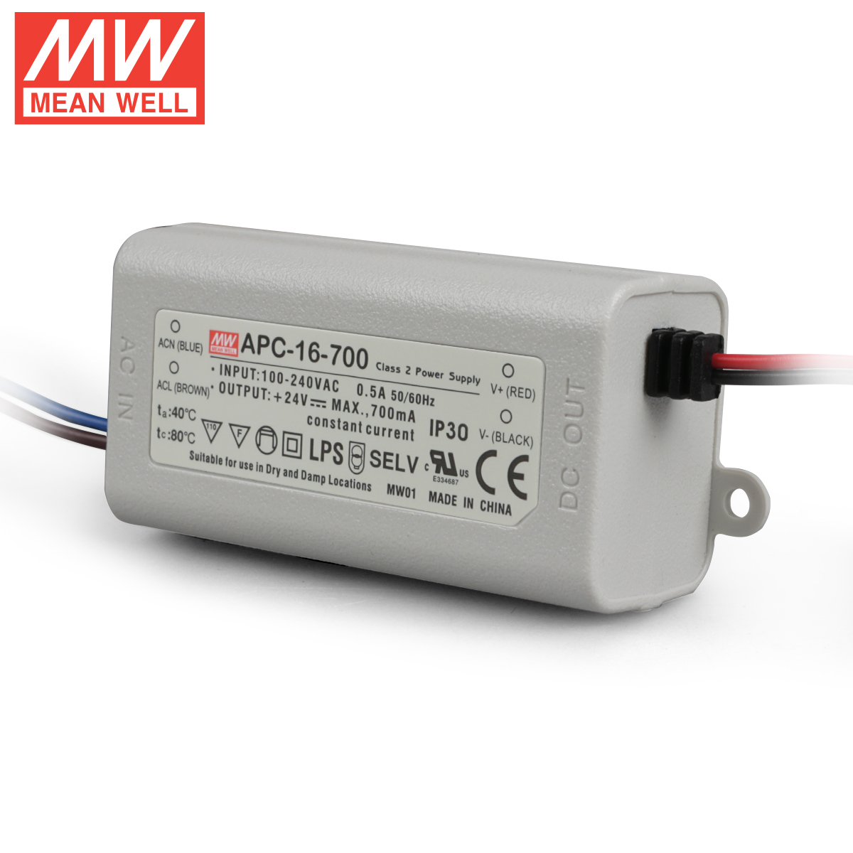 Taiwan Mingwei switching power supply APC-16-700 16W 9-24V700mA plastic case waterproof LED constant current power supply