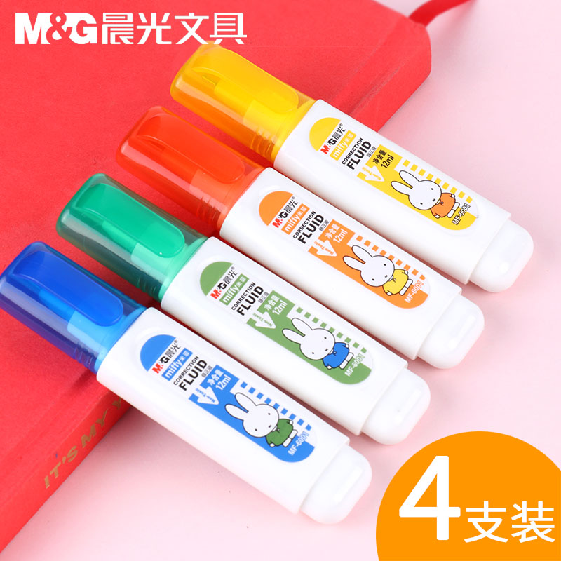 Morning light 4 clothes quick dry no-scratch type correction liquid affordable large capacity correction coating change liquid non-toxic and wrong pen multifunction students use cute white with brush and word spirits