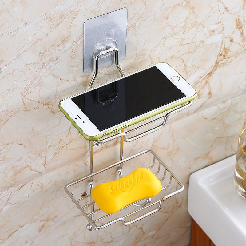 Bathroom suction cup Wall-mounted incense rack Fat plate rack Drain powder room wall-mounted non-perforated stainless steel box