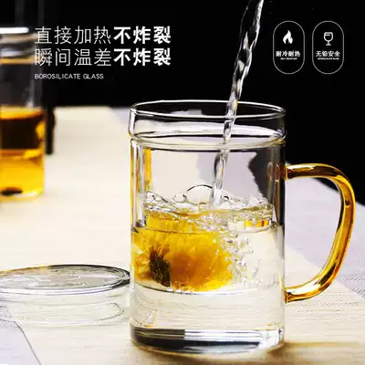 Glass tea cup tea cup home thick heat-resistant cup with lid filter office Cup for men and women making tea transparent water Cup