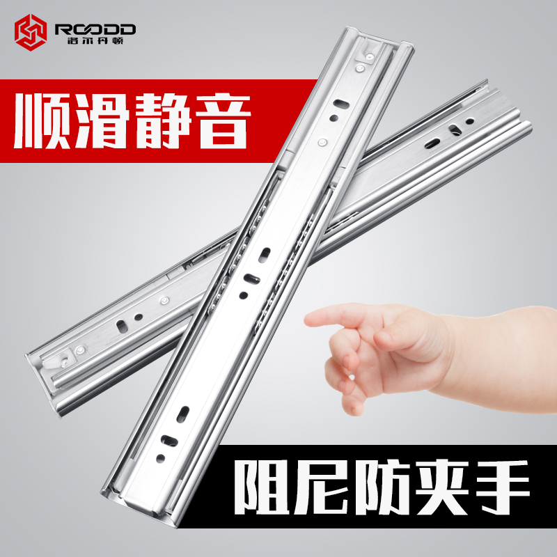 ROODD drawer track damping buffer three-section rail slide side mounted thickened 8-inch 24-inch desk slide