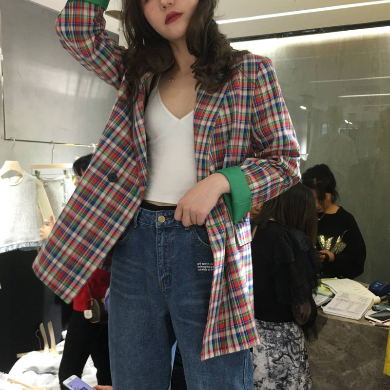 Small suit jacket female 2019 new women's plaid casual fashion loose Hong Kong style spring overcoat