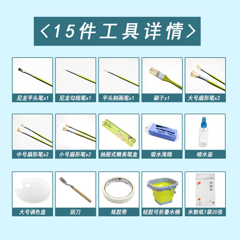 Set combination one (pigment box) Set combination 2 (pigment box 15 pigment box) green brush Set combination 2 (pigment box 15 pigment box) yellow painting