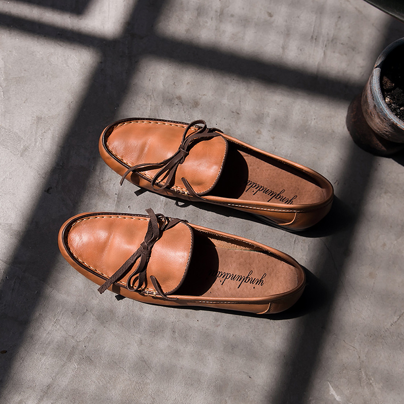 Summer Breathable Genuine Leather Head Lefu Shoes Male Korean version trendy beans Bean Shoes Sailing Shoes Ingléal Flat Bottom Set Foot Sloth Shoes
