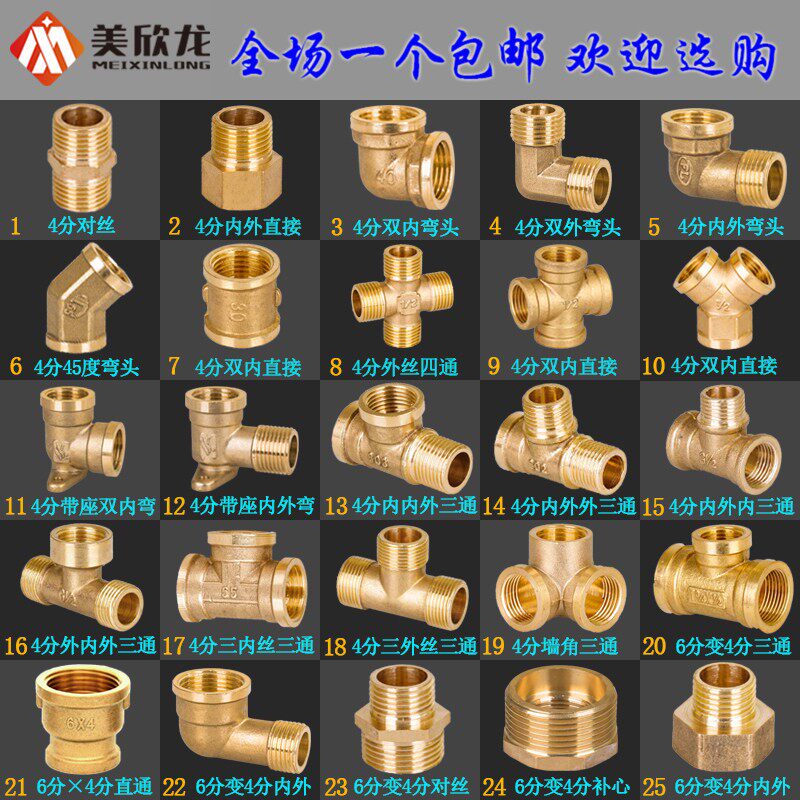 Copper 4-point joint inner and outer wire direct elbow double male screw three-way 6-point turn 4-point variable diameter water pipe plumbing fittings