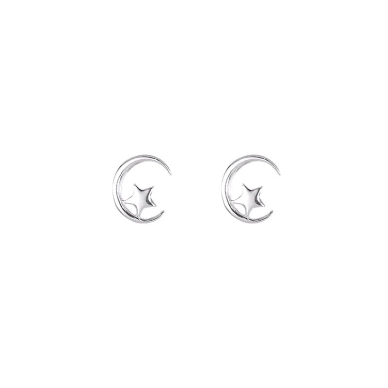 925 Pure Silver Earrings Woman Sweet Beauty Little Fresh Stars Moon Ear Pin Temperament Korean Minimalist Personality Creative Ear Accessories
