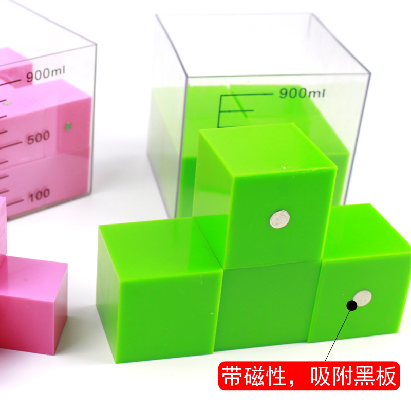 Capacity volume unit demonstrator with 3 3cm 5cm Magnetic small cube Three-dimensional geometry Primary school mathematics teaching aids Teaching aids Teaching instruments 1L container volume volume learning cognition