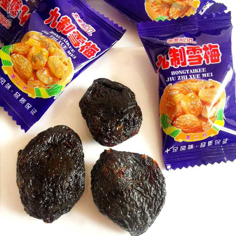 Macro Tai kee nine snow plum talk plum 118 gr old with nuclear apricot dry plum flesh plum fruit 8090 nostalgic snacks