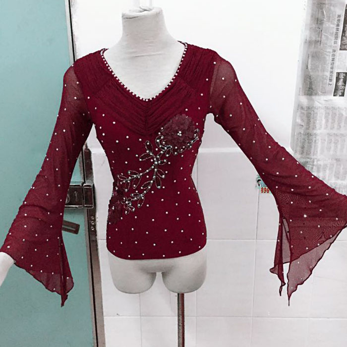 Book The New Morden Dance Blouse Women Waltz Social Dance Trumpeter Sleeves Workwear Big Size and Stick Drill