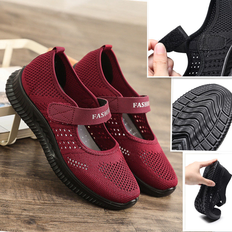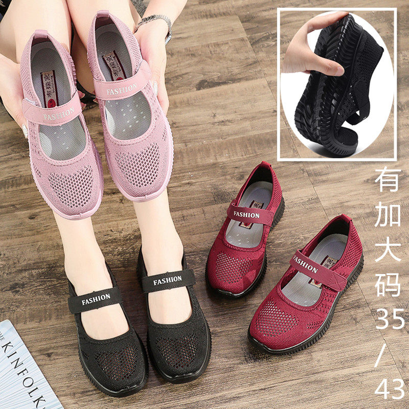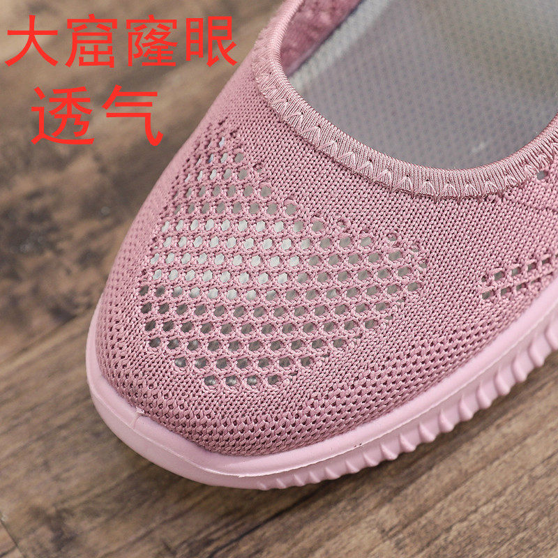 Pinghey shallow old lady shoes soft sole middle-aged mother breathable grandmother old Beijing cloth shoes large size casual net shoes summer